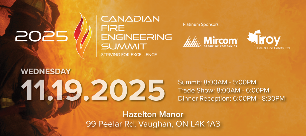The Canadian Fire Engineering Summit returns on Wednesday, November 19, 2025, at Hazelton Manor, Vaughan, ON. This premier event brings together key stakeholders from across Canada’s fire protection industry, including fire prevention officers, engineers, contractors, and industry leaders.